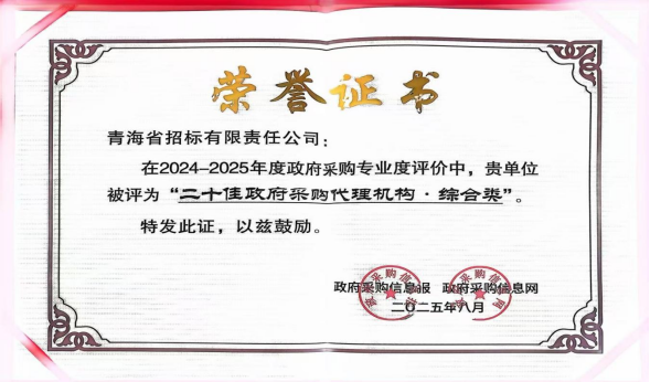 近年來,在政府采購領域高質量發展的浪潮中,青海省招標有限責任公司始終以“專業鑄魂、服務立企”為核心宗旨,進一步深耕政府采購代理服務賽道,憑借規范的操作流程、卓越的專業能力與深厚的行業積淀,逐步成長為區域政府采購服務領域的標桿型企業。近期,經青海省財政廳推薦,公司積極參與全國“2024-2025年度政府采購代理機構專業度評價”活動。經過專業評審,憑借雄厚的專業實力、專業的服務口碑,再一次從全國招標采購領域的專業精英中脫穎而出,榮獲全國(2024-2025年度)“二十佳政府采購代理機構·綜合類”榮譽稱號。