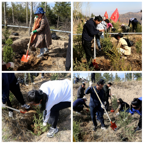 植樹現場,干部職工分工協作,揮鍬挖坑、扶苗填土、踩實固苗、培土圍堰……各環節工作配合默契、銜接有序,呈現出一派熱火朝天的勞動景象。經過一上午的緊張忙碌,2000余株青海云杉在大墩嶺綠化區“安家落戶”,再為西寧大地增添新綠。