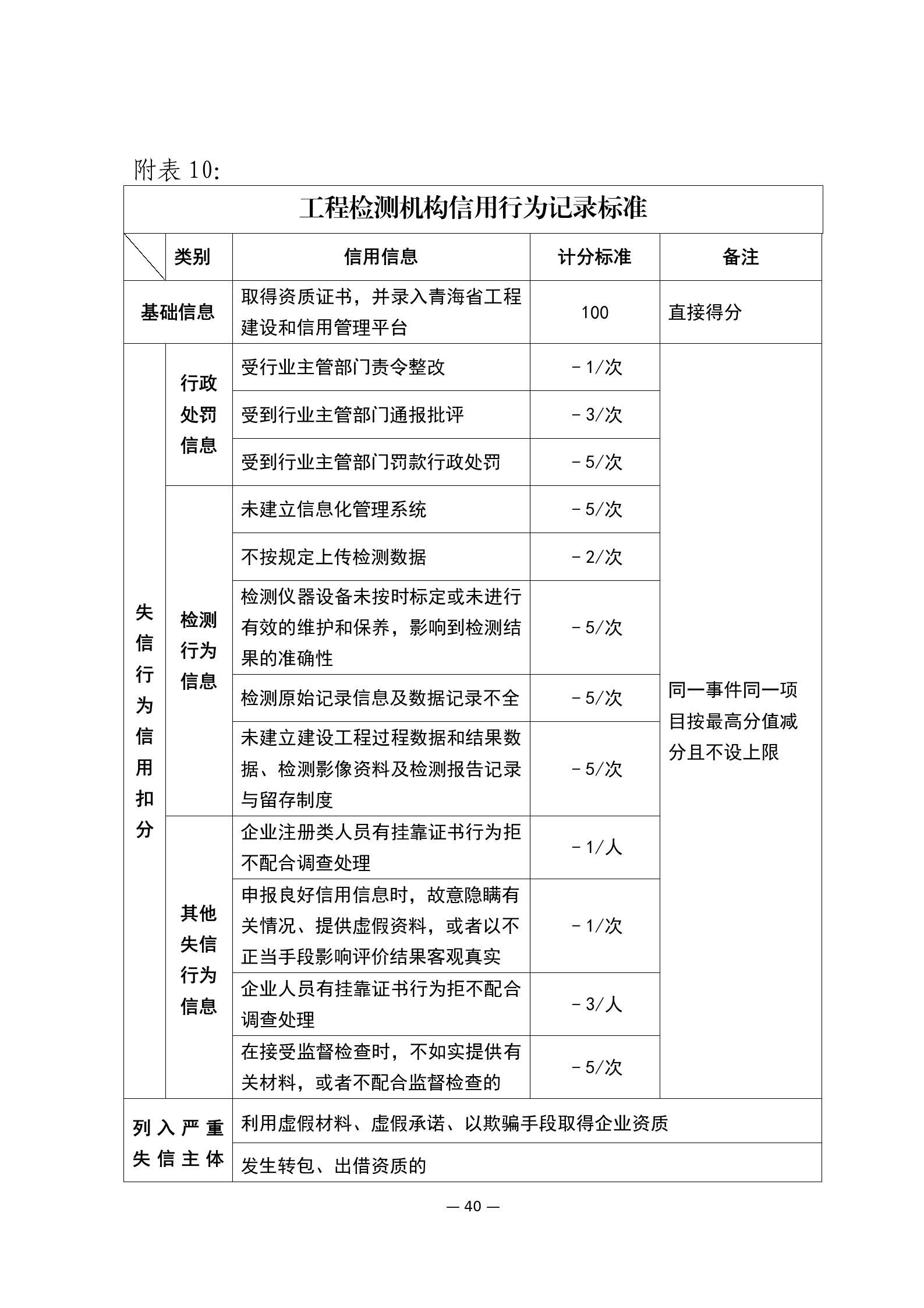 第十六條 建筑市場各方主體和從業(yè)人員的信用評價實(shí)行信用記錄、守信獎勵和失信行為動態(tài)記錄記分制。根據(jù)《青海省建筑市場各方主體和從業(yè)人員失信行為記分標(biāo)準(zhǔn)》(附件)進(jìn)行公開展示和記分。基礎(chǔ)分100分。